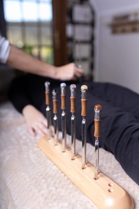 Rééquilibrage énergétique ciblé avec les diapasons pour soulager le stress, les insomnies et les blocages physiques ou émotionnels.